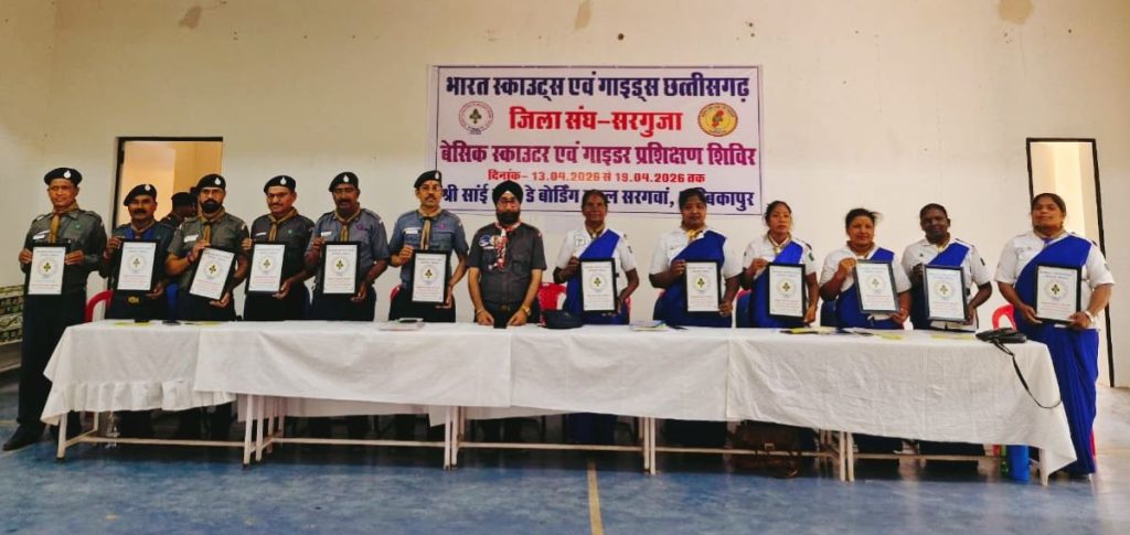 न्यूजवॉल अंबिकापुर सरगुजा : भारत स्काउट्स एवं गाइड्स, जिला संघ सरगुजा के तत्वावधान में आयोजित सात दिवसीय बेसिक स्काउट मास्टर एवं गाइड कैप्टन प्रशिक्षण शिविर का समापन अत्यंत गरिमामय, अनुशासित एवं प्रेरणादायी वातावरण में संपन्न हुआ।